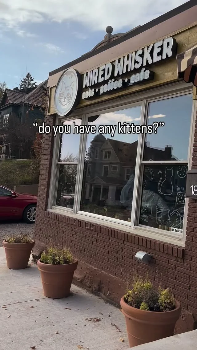 Wired Whisker is a new cat cafe located in the heart of Duluth. At the cafe, youβll find a cozy place to relax, refreshing beverages, and locally-made baked goods. If youβd like to spend some time with the cats in our designated cat lounge, you can make a reservation on our website by clicking Book Now , or by giving us a call at (218) 481-7107. All of our cats are adoptable through our partnerships with Animal Allies Humane Society, Pet Haven, and Carlton County Animal Rescue.