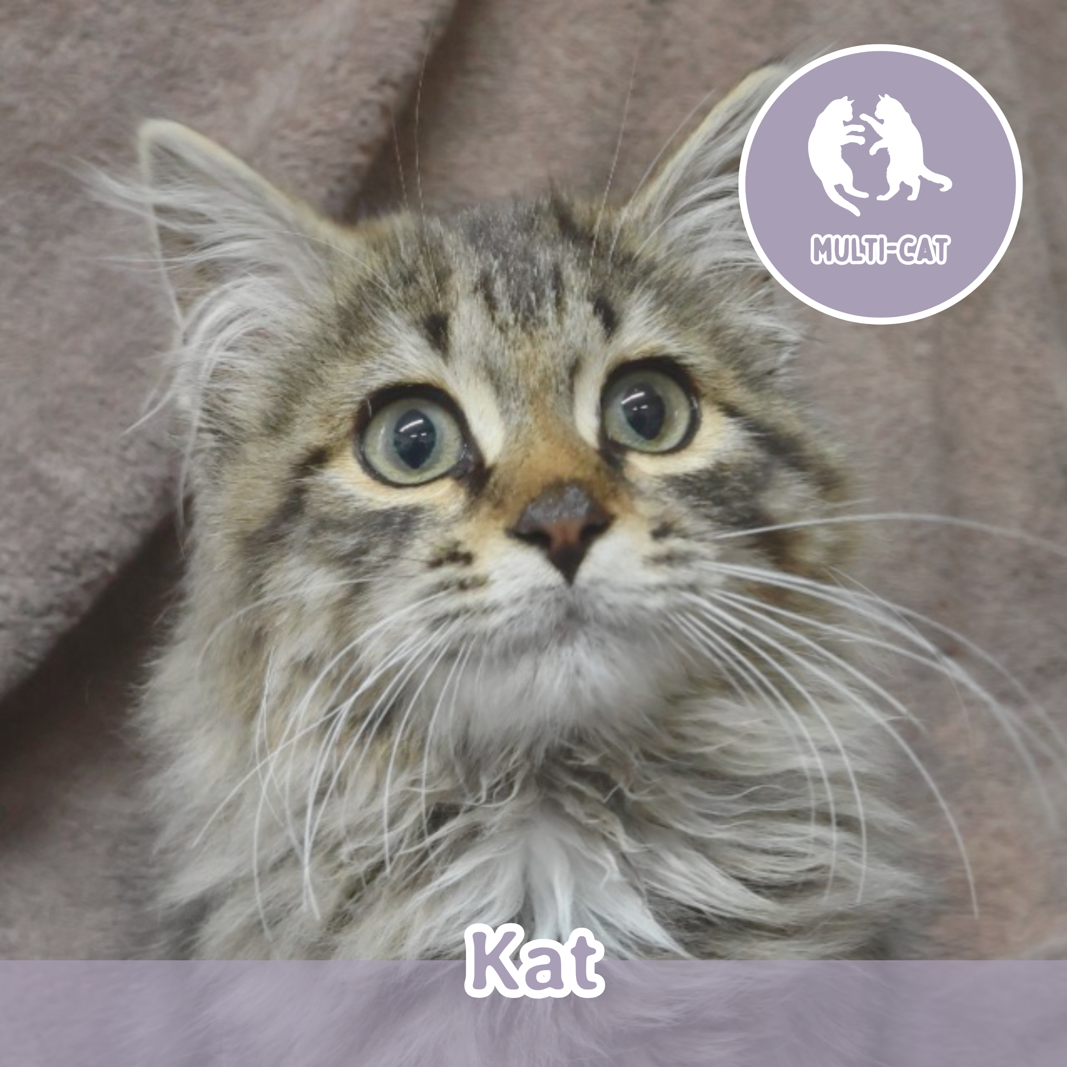If you’re looking for a kitten who’s equal parts majestic fluff and joyful goofball, Kat is ready to steal your heart and rule your home (lovingly, of course!).