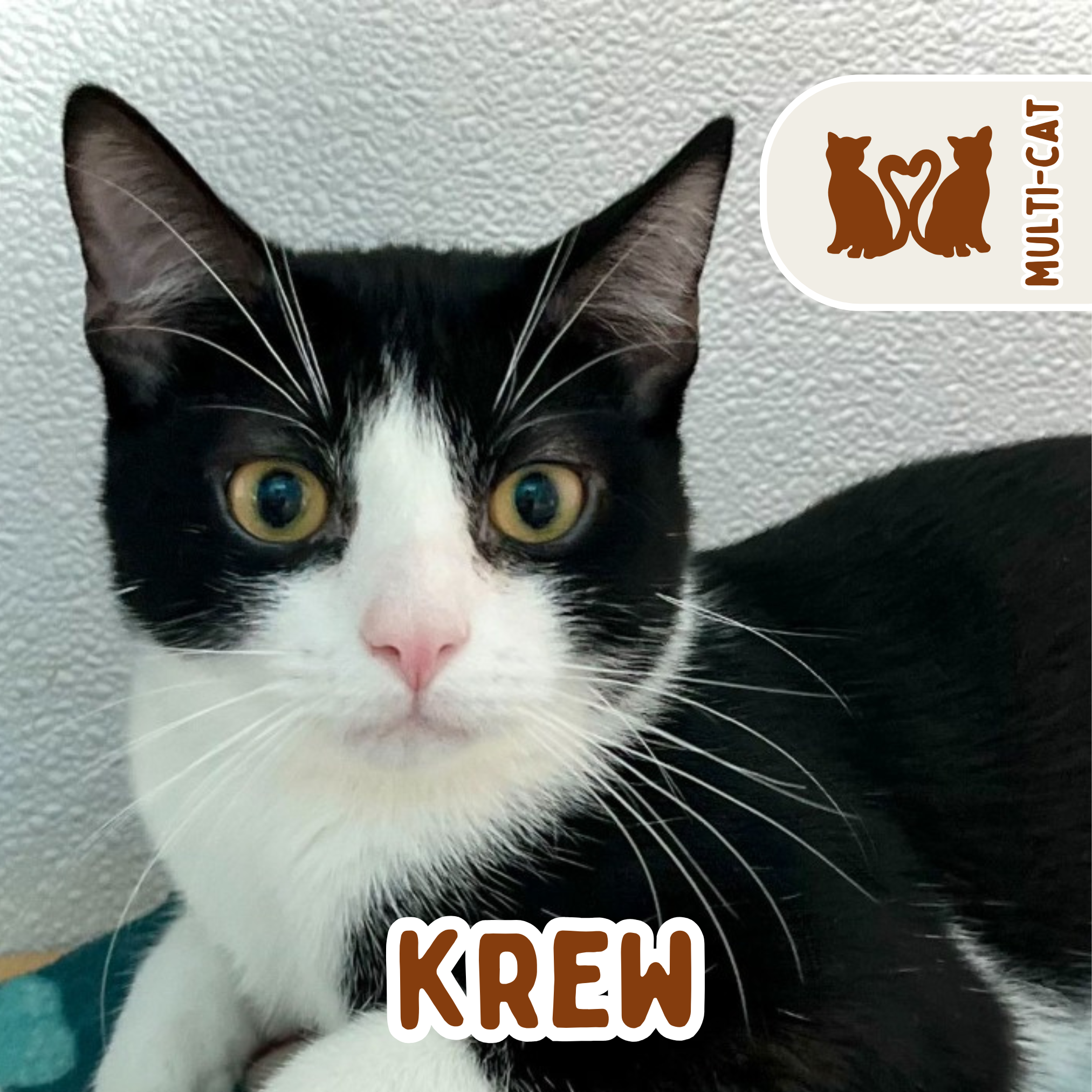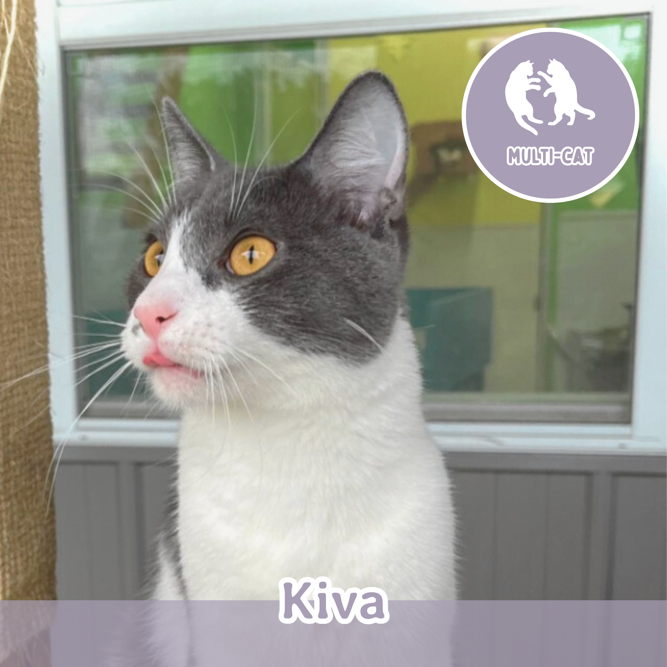 Adoption Fee: $200Meet Kiva, the boldest of three brothers, Krew, Kiva, and Kai, who once was a little wary of humans. Now? He’s first in line for treats, toys, and attention! Playful, curious, and full of charm, Kiva is ready to bring joy and energy to his forever home.