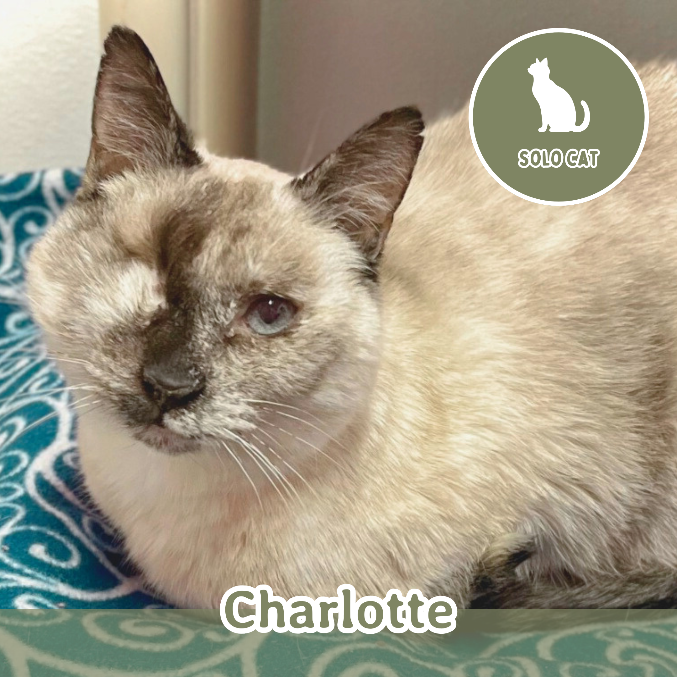 Adoption Fee: $200Charlotte has come a long way, and she’s more than ready for a cozy forever home to call her own. When she first arrived, this brave girl had a rough road ahead. She needed surgery to remove one of her eyes and spent a long time recovering in a transition kennel. Defensive at first and unsure of her surroundings, Charlotte kept her guard up. But with time, care, and gentle handling, she’s revealed her affectionate, spirited side.